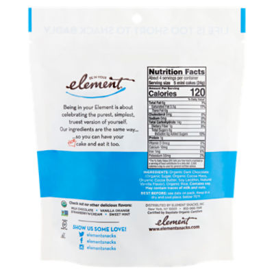 There are 80 calories in 1 cake 17 g of Element Milk Chocolate Rice Cakes. Calories Fat Protein Fiber.